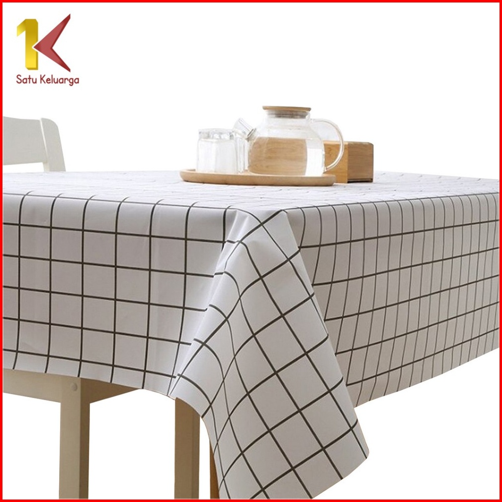 Satu Keluarga Taplak Meja C288 Alas Meja Makan Anti Air Motif Kotak-kotak Bahan Peva Taplak Meja Ruang Tamu Persegi Panj