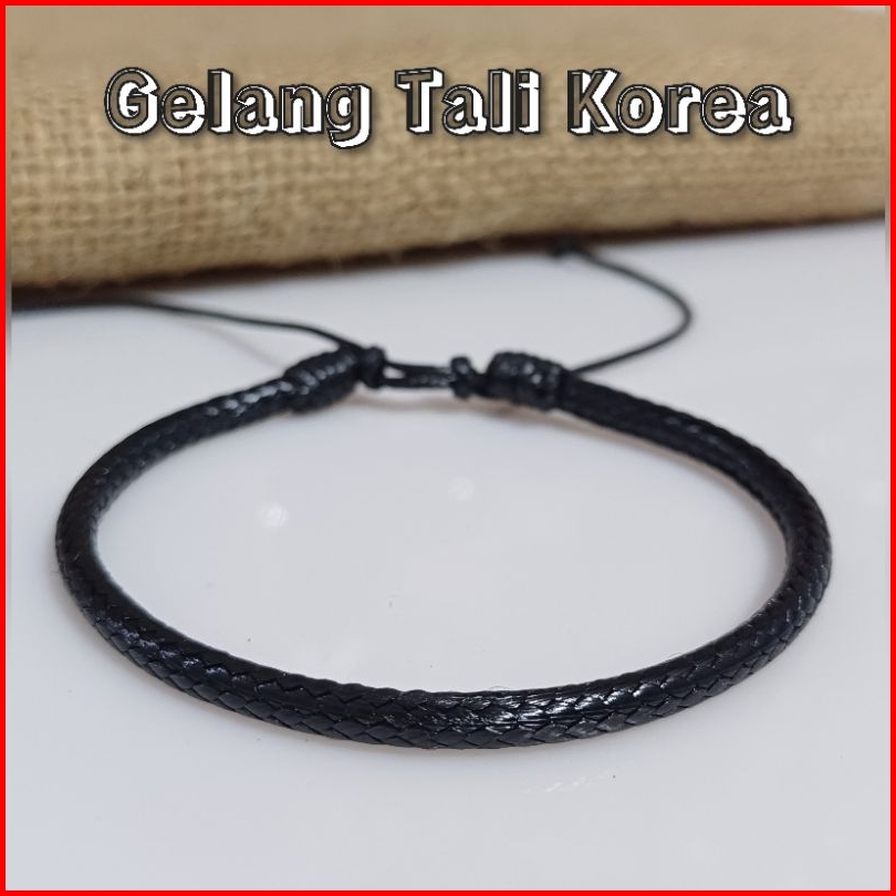Gelang Tali Korea Hitam Polos 3mm Asli Indonesia