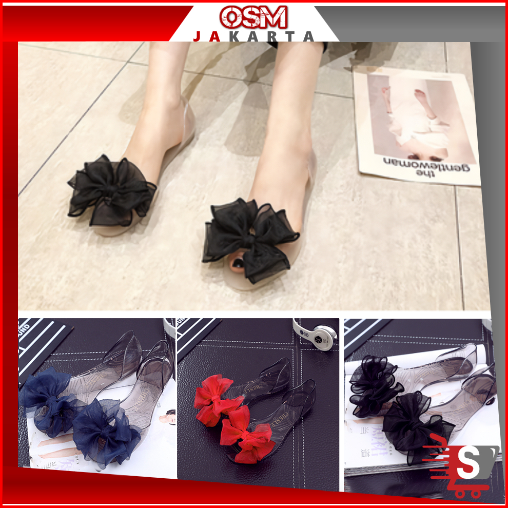 Osm Jkt S5785 Sepatu Wanita Flatshoes Bunga Korean Ribbon Transparent Slipers Sandal Sepatu Jelly Bunga Flatshoes Transp