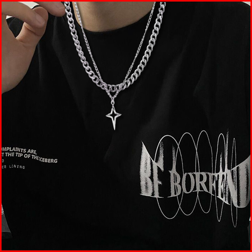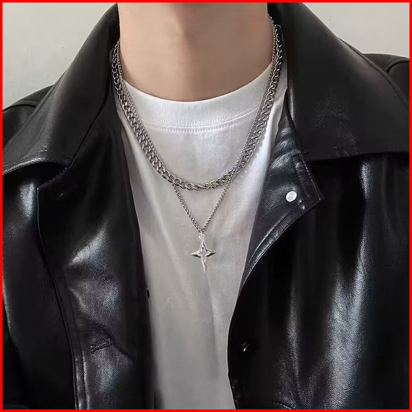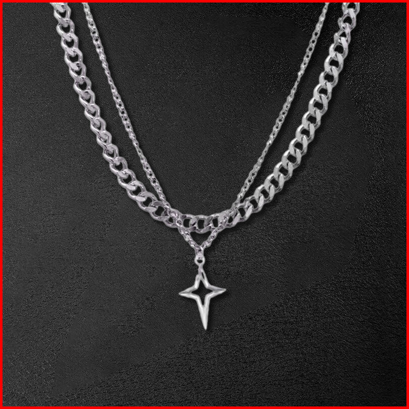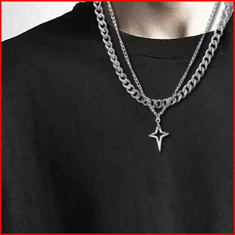Leere-kalung Titanium Bintang Salib 2 Layer Kalung Wanita Dan Pria Hip-hop Gaya Keren Fashion Aksesoris