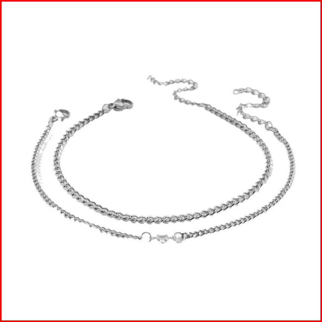 Gelang Couple Elviora Minimalis Elegan Alloy Silver Korea Style Anti Karat Zircon Hati