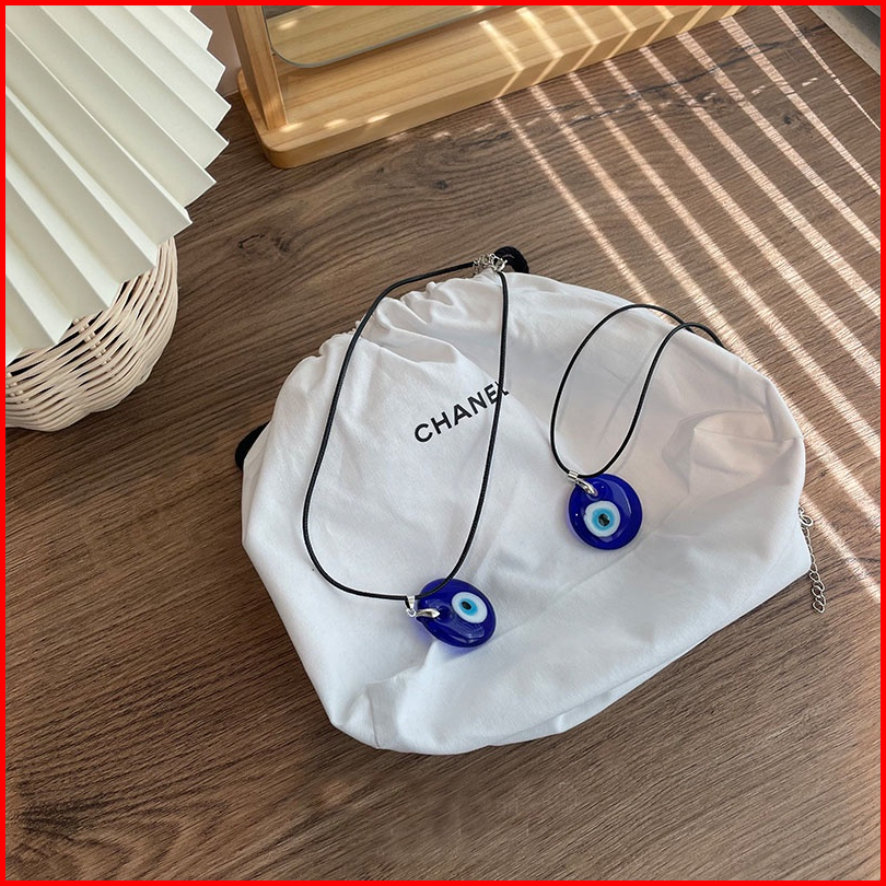 Blue Monster Devil Kalung Rantai Klavikula Desain Mata Iblis Bentuk Bulat Warna Biru Untuk Manik-manik -a