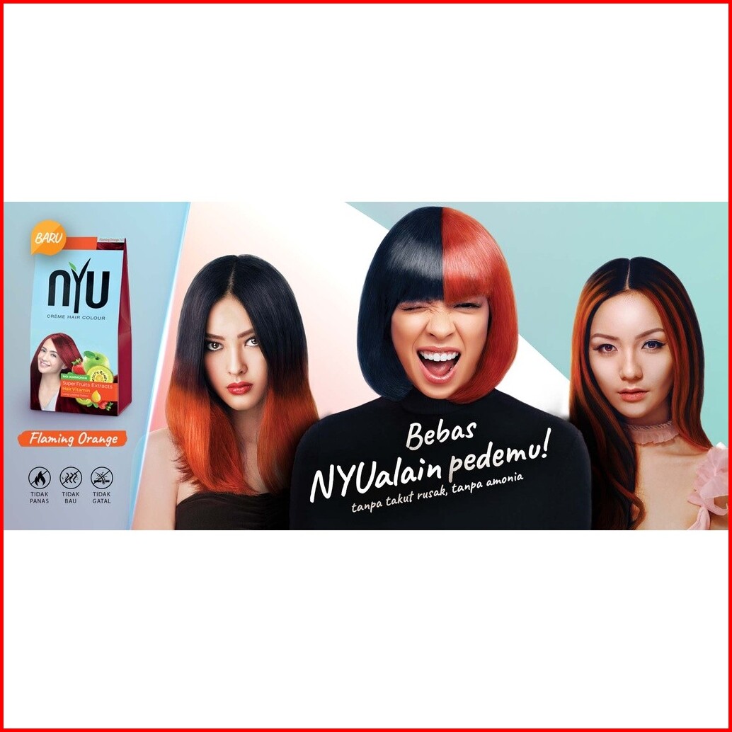 Nyu Creme Hair Colour Pewarna Rambut Cat Rambut Natural Tanpa Amonia Black Brown Blue Bleaching Red