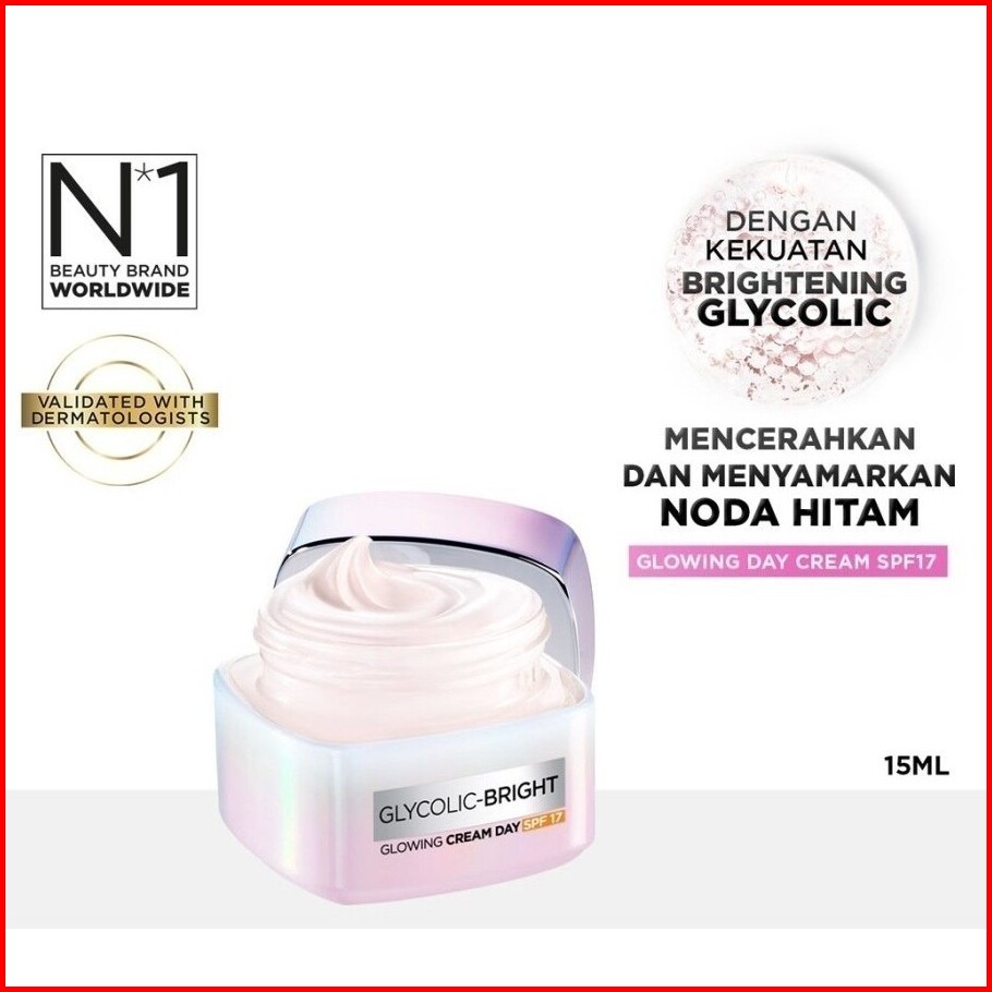 L Oreal Paris Brightening Glycolic Bright Glowing Day Cream Spf17 15ml - 50ml Krim Siang Glyco Loreal Tnt Beauty Shop