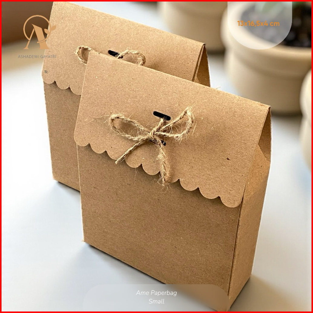 Ashadewi Gayatri - Ame Paperbag Small 13x16.5x4 Cm Paperbag Rakit Paperbag Tali Rami Goodie Bag Brown Kraft