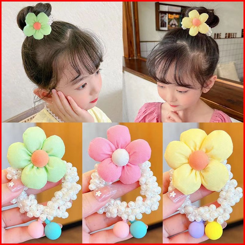 Hallo Girl F153 Ikat Rambut Wanita Gaya Korea Ikat Rambut Motif Bunga Mutiara Import