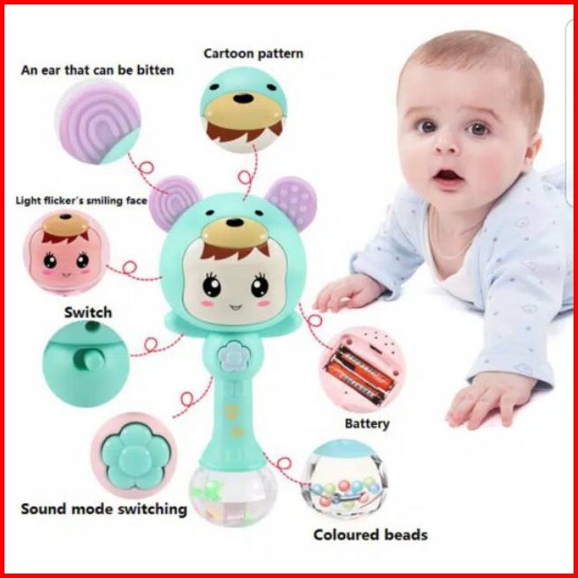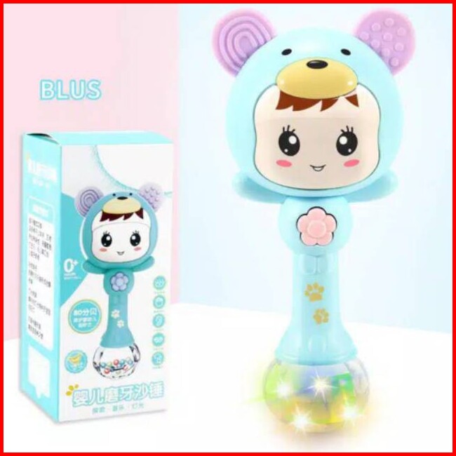 Mainan Bayi Tongkat Rattle Teether Musik Lampu Kelap Kelip