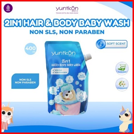 Yunikon 2in1 Baby Wash Refill 400ml Non Sls Non Paraben