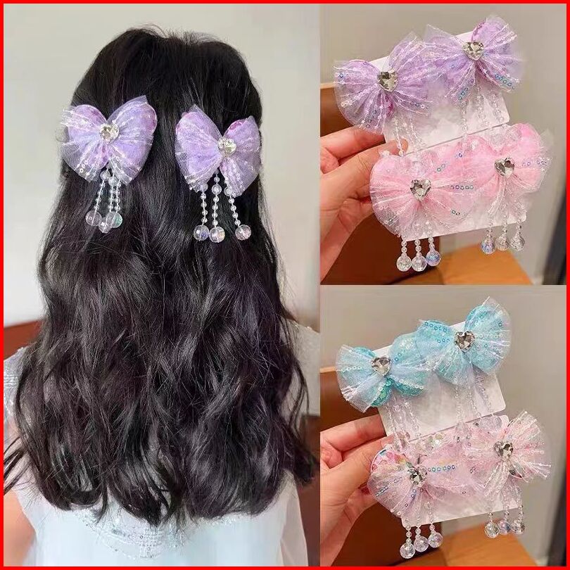 Hello Girl F385 Jepit Rambut Anak Sepasang Jepit Rambut Anak Motif Love Permata Gaya Korea Import