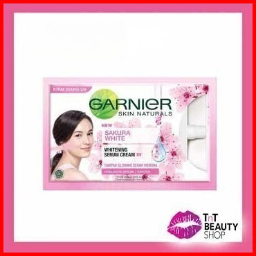 Garnier Sakura White Brightening Whitening Serum Cream 7ml - Krim Siang Uv Wajah Tnt Beauty Shop