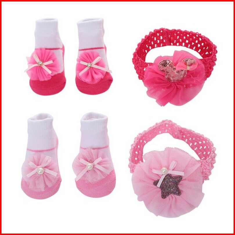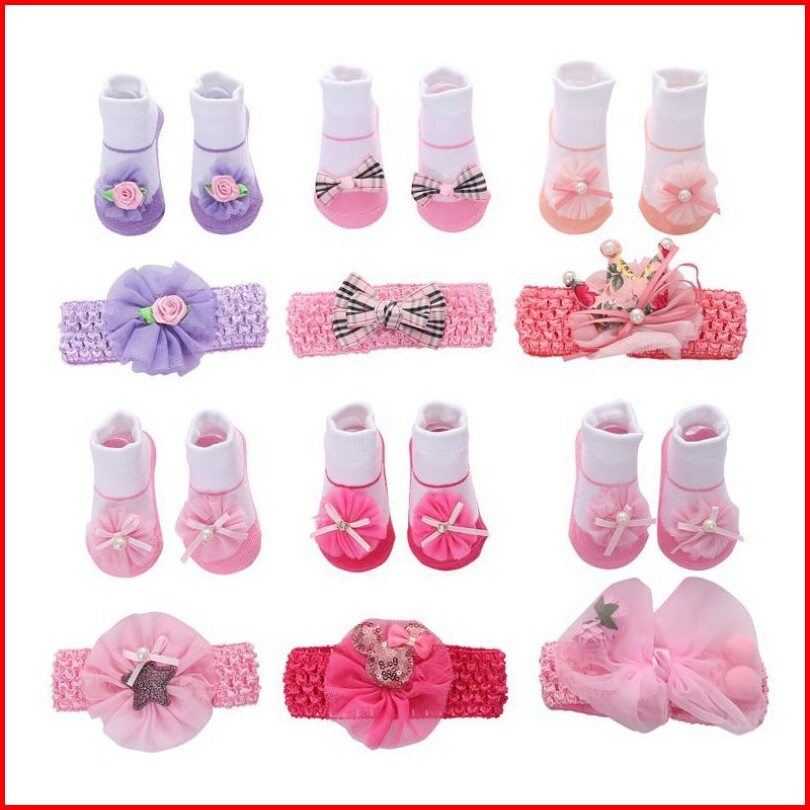 Kaos Kaki Bandana Set Newborn Bayi Kaos Kaki Bunga Newborn Bayi Perempuan.