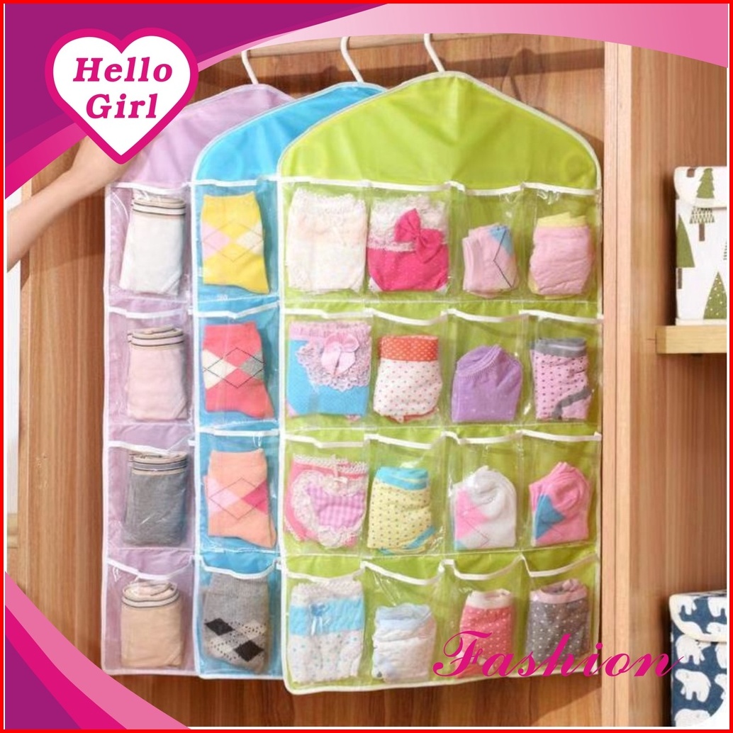 Hello Girl D35 Pouch Hanging Organizer 16 Sekat Tempat Celana Dalam Gantung Storage Import