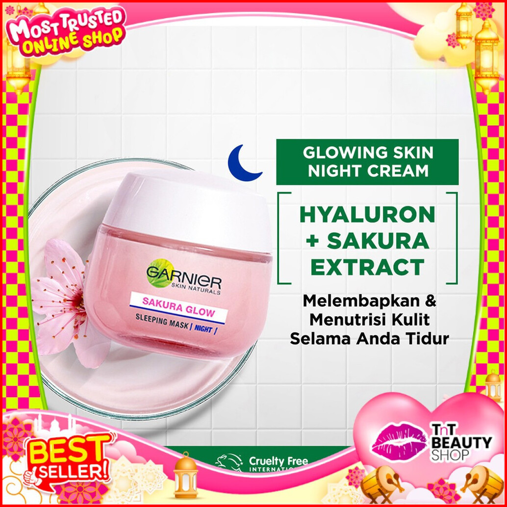 Garnier Sakura Glow Serum Night Cream Moisturizer Sensitive Skin Care 50ml Untuk Wajah Cerah Merona - Sleeping Mask Tnt