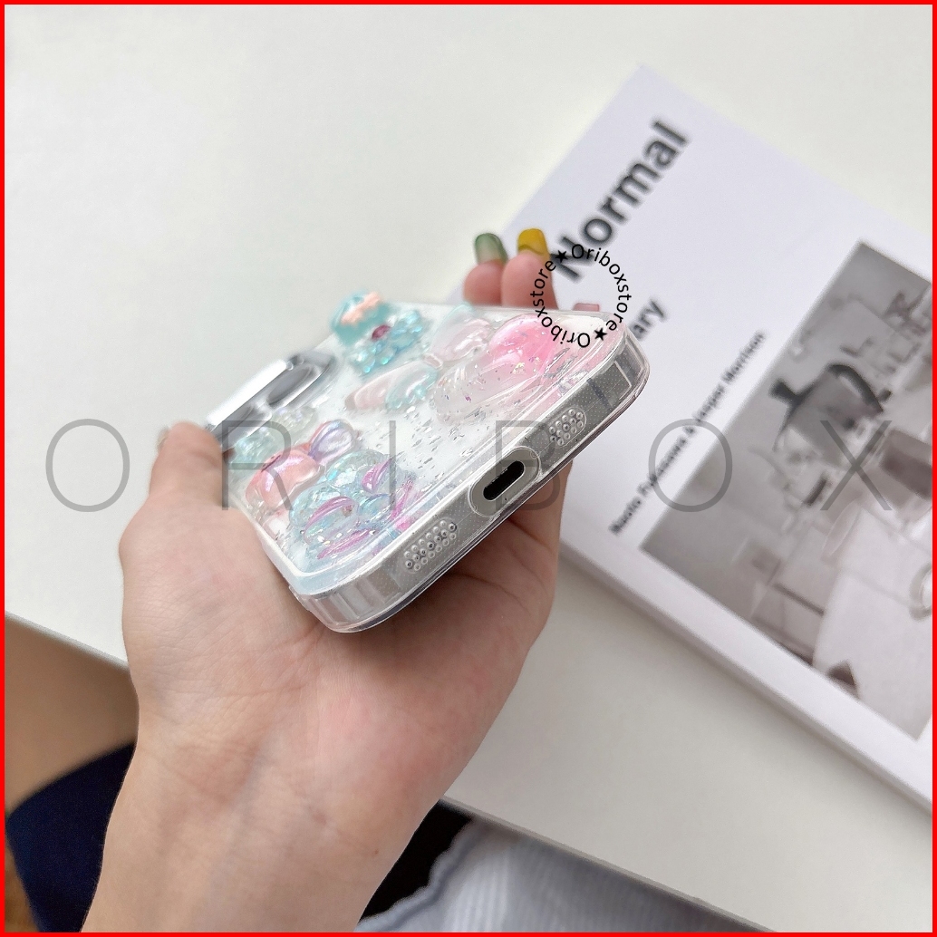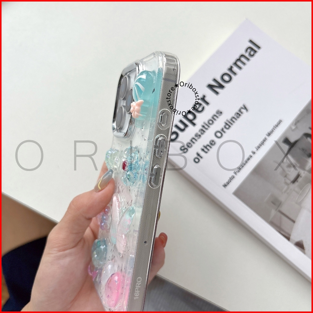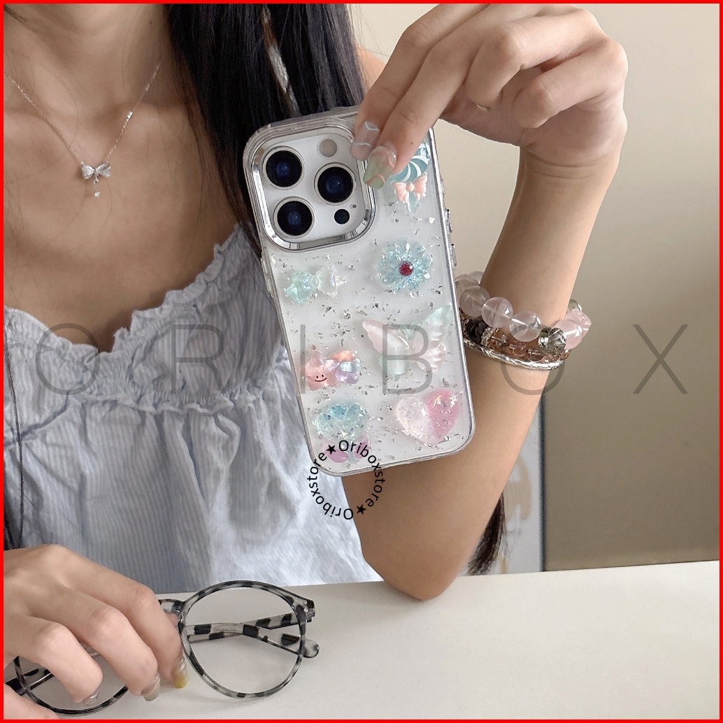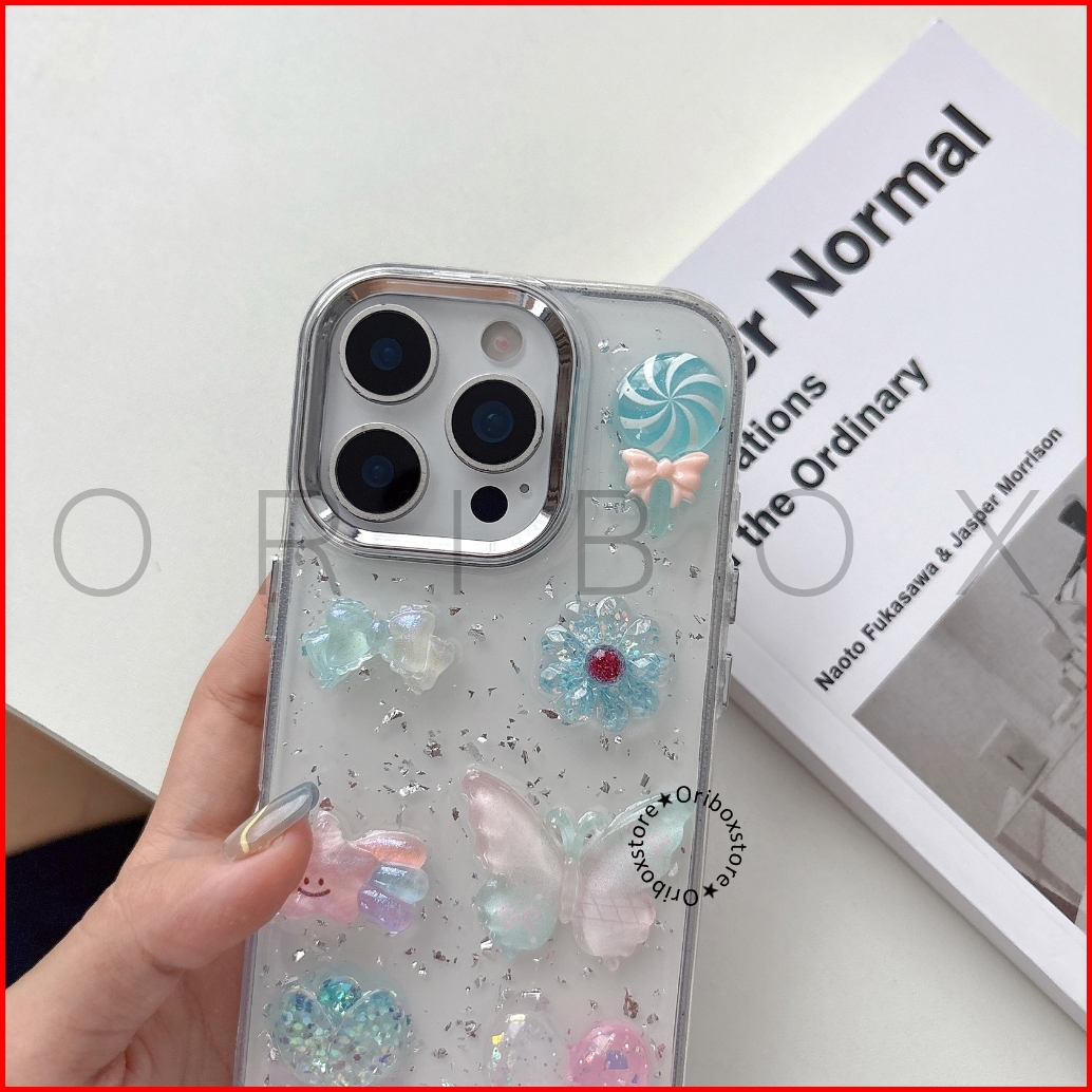 Oribox - 3d Blue Flower Butterfly Clear Glitter Casing Cute Case For Iphone Xr 11 12 13 14 15 16 17 17air Pro Plus Proma