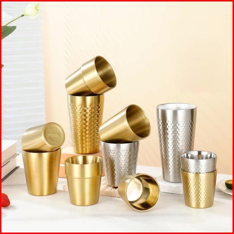 Gelas Korea Stainless Steel 304 Double Wall Gelas Cafe Stainless Gelas Restorant Estetik