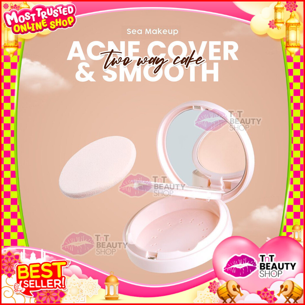 Sea Makeup Acne Cover Smooth Two Way Cake Pressed Powder And Matte Bedak Padat Compact Powder With Salicylic Acid Cerami