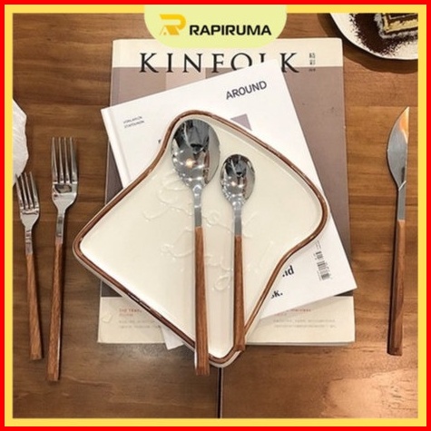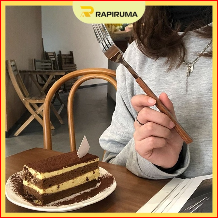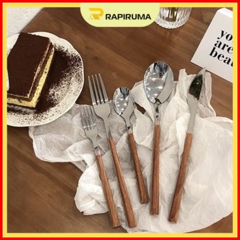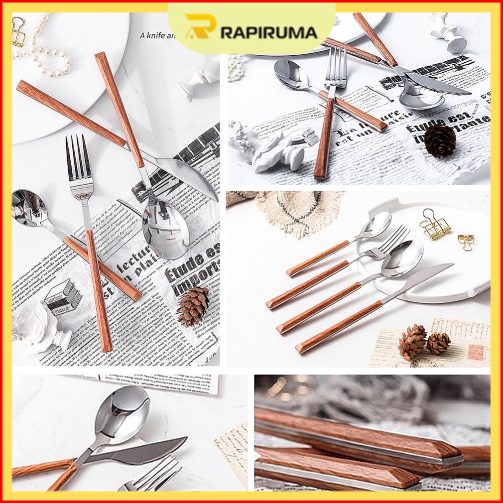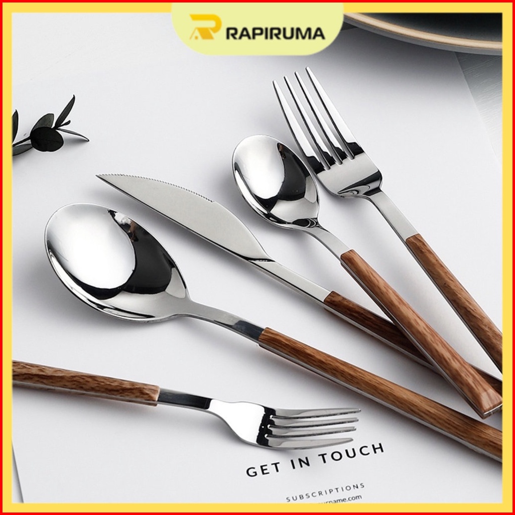 Sendok Garpu Stainless Korea Handle Kayu Cutlery Wood Grain Set Spoon Fork Knife Steak Tea Spoon Tea Fork Sendok Garpu T