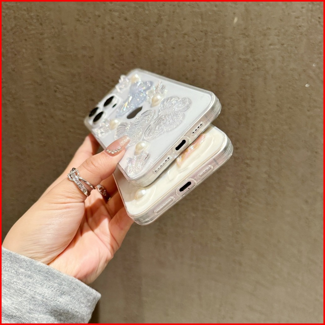 New 3d White Sand Ribbon Butterfly Love Case - Hardcase Casing Hp Compatible For Iphone 7 8 11 12 13 14 15 16 17 17air P