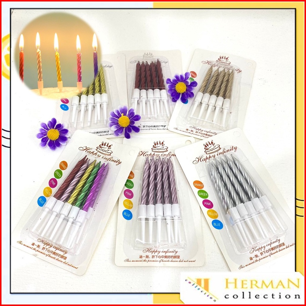 Hc Lilin Ulang Tahun 10 Pcs Lilin Ulir Metalik Birthday Candle Party Warna Warni Murah