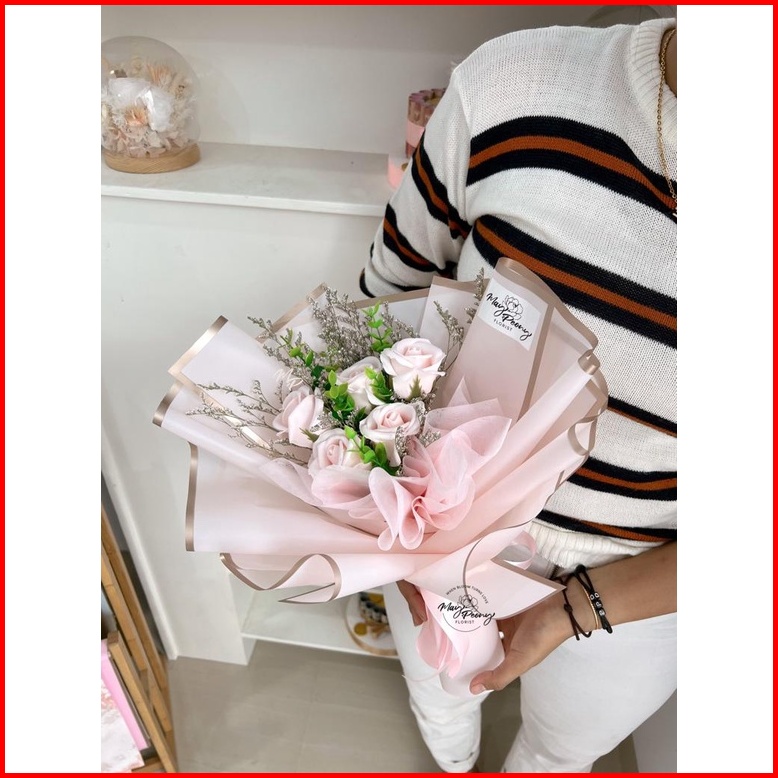 Rose Soap Bouquet 5 Stem - Buket Bunga Sabun Hadiah Kado Gift Valentine Ultah Anniversary Wisuda