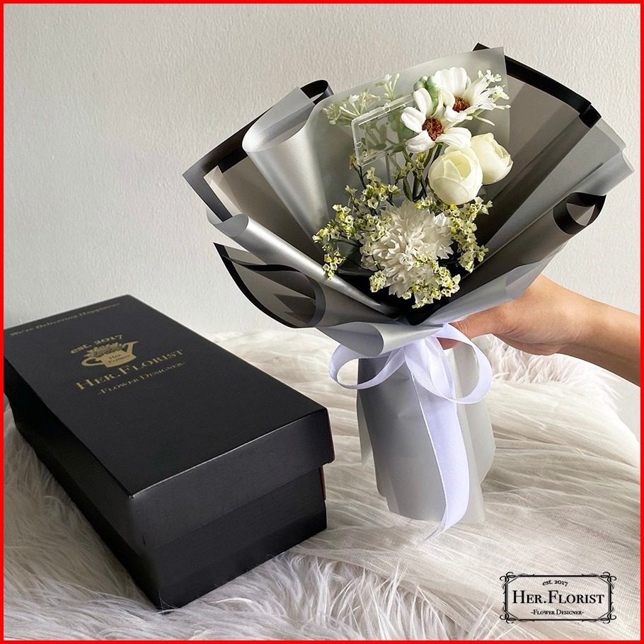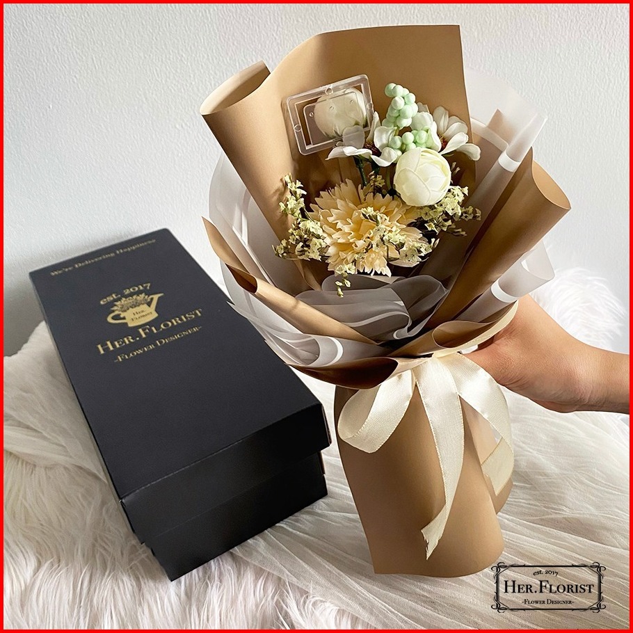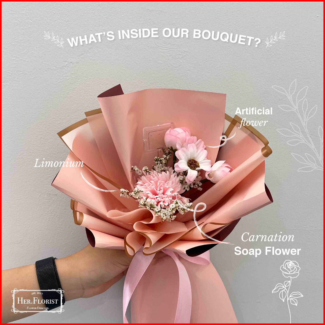 Her.florist Carnation Single Soap Dried Flower Bouquet Buket Bunga Sabun Kado Valentine Wisuda
