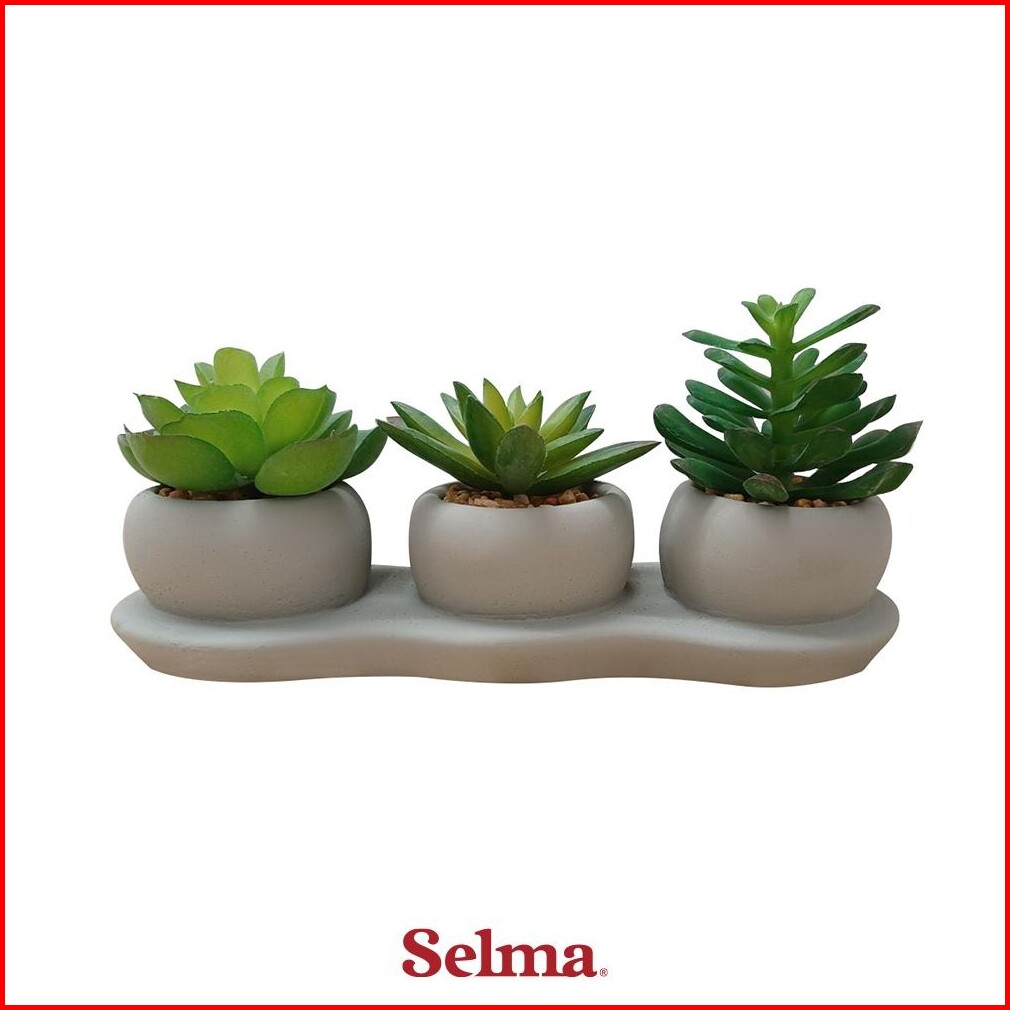 Selma Set 3 Pcs Oliva Tanaman Artifisial Sukulen - Abu-abu Tumbuhan Buatan Tanaman Kaktus Artificial Dekorasi Plant Paja