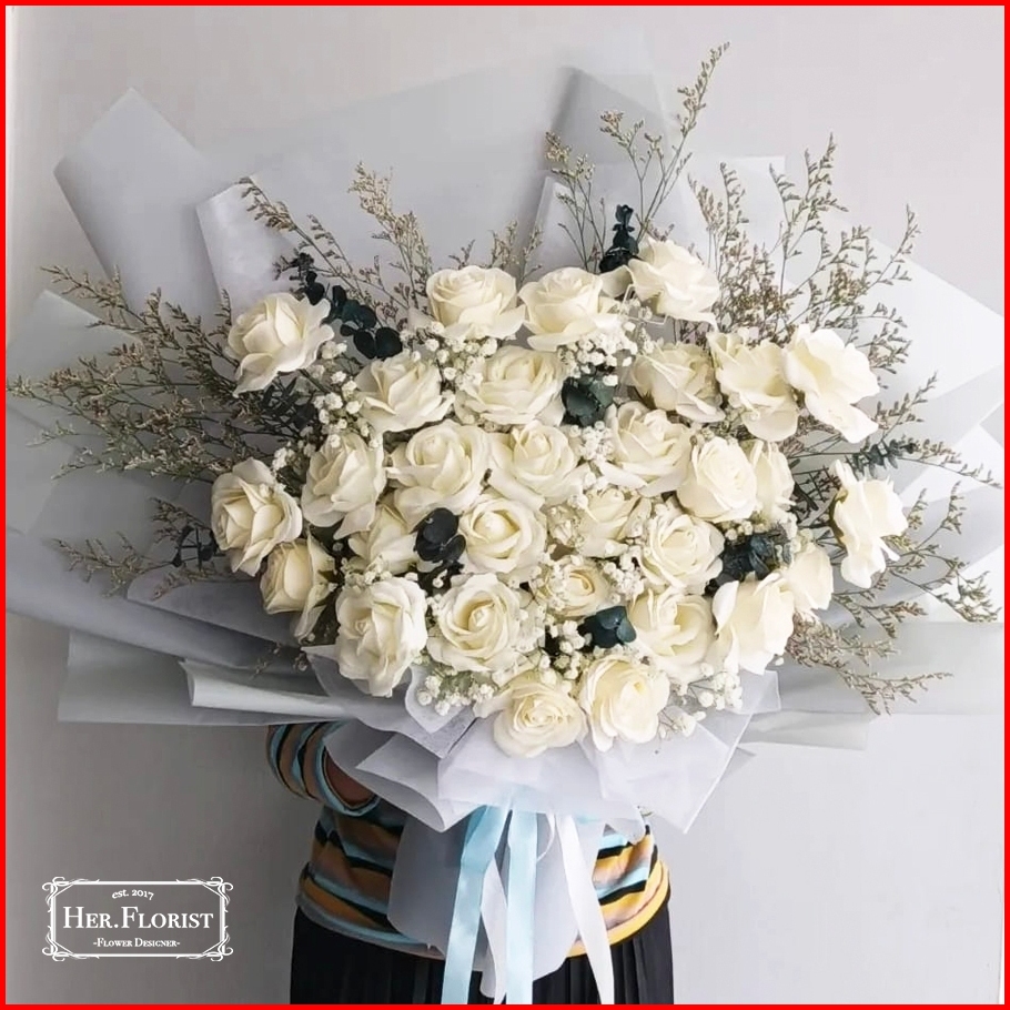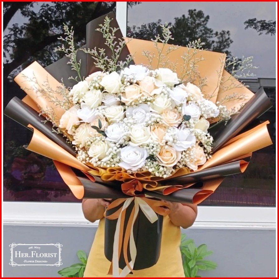 Her.florist Rose Premium 15-30pcs Soap And Dried Flowers Bouquet Buket Mawar Sabun Jumbo Besar