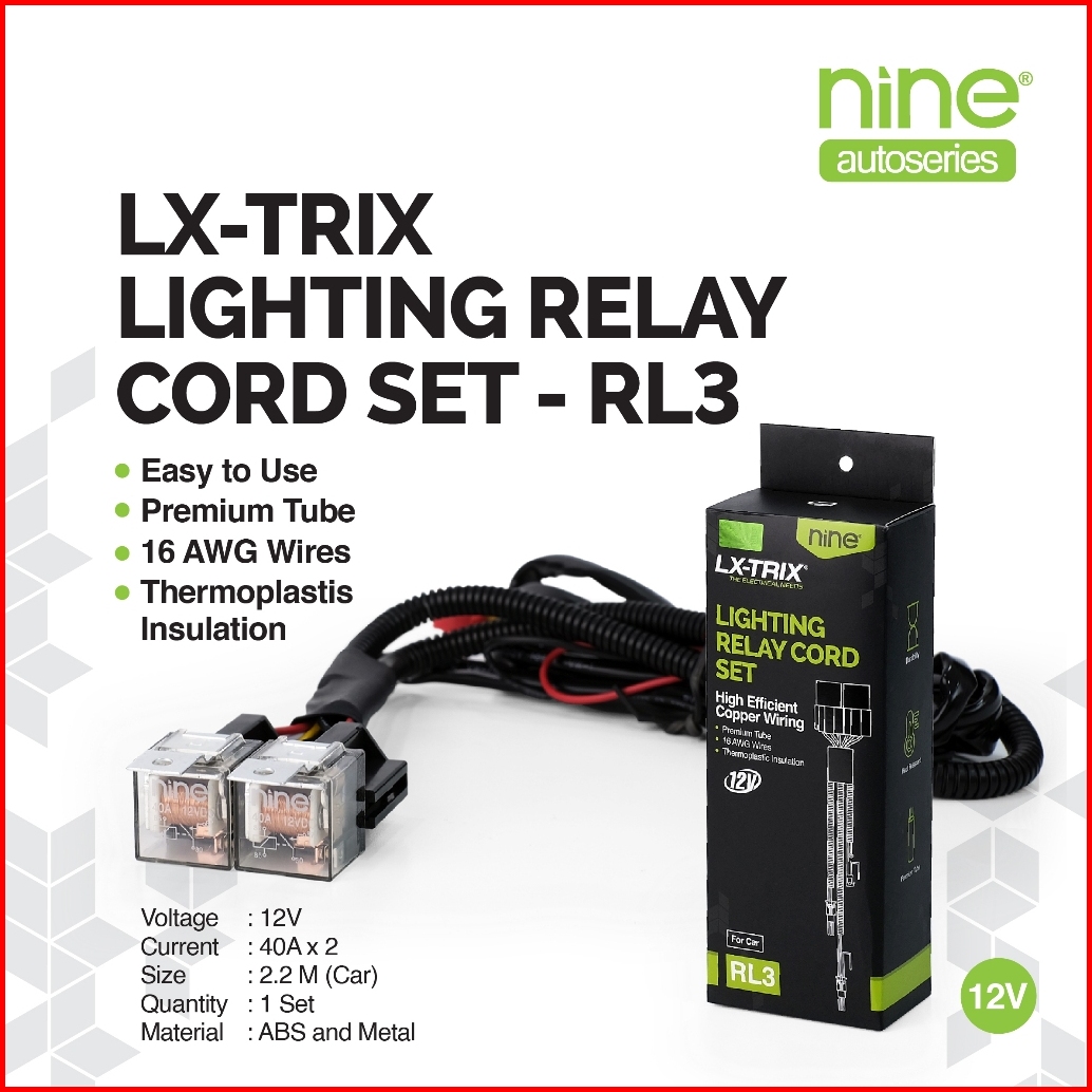Lx-trix Relay Set Lampu Tembak Sorot Untuk Mobil Motor Universal 2.2 Meter Rl3 - Nine Autoseries