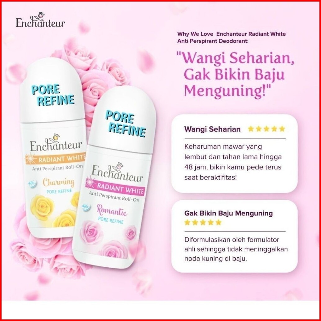 Enchanteur Deodorant Roll On Radiant White 40ml - Parfum Wanita Tnt Beauty Shop