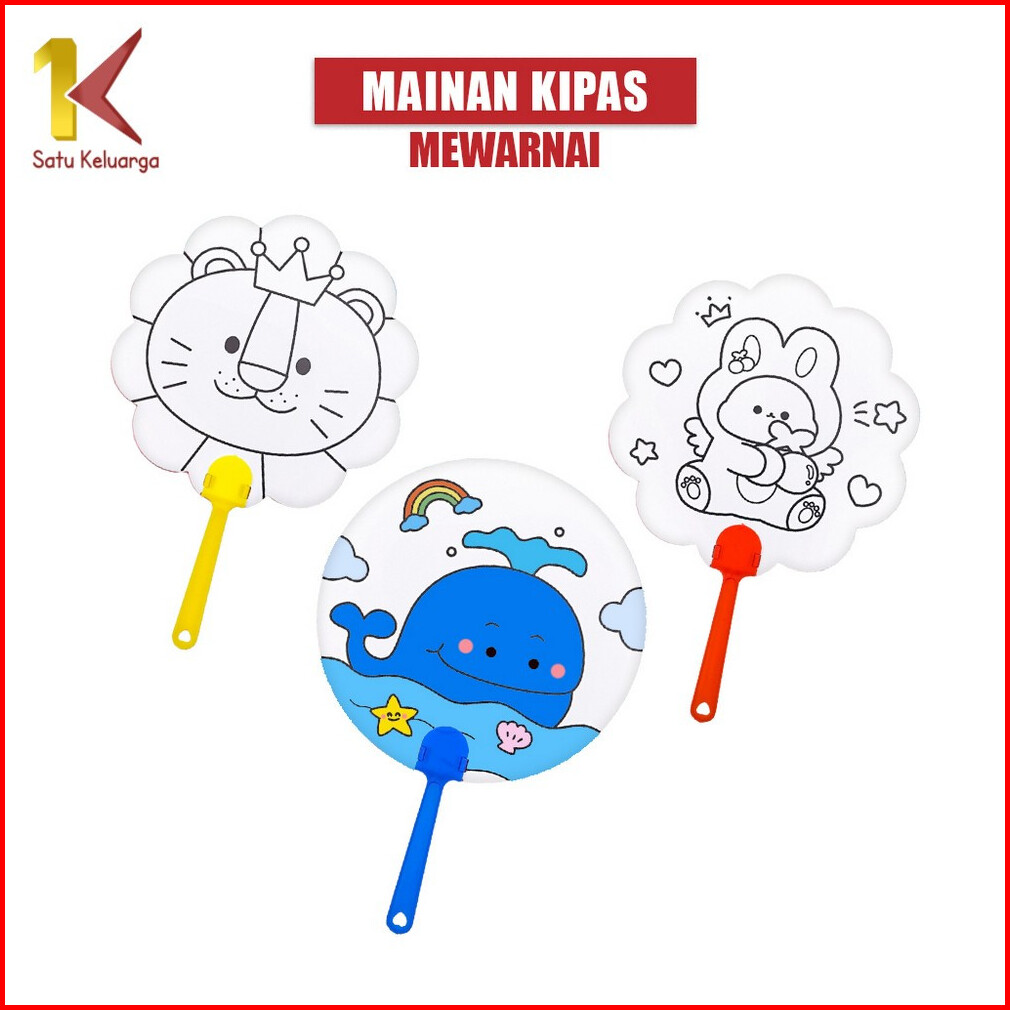 Satu Keluarga Mainan Edukasi Kipas Mewarnai Anak M374 Diy Kipas Motif Astronot Dino Kerajinan Tangan