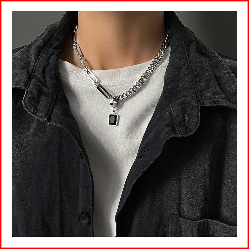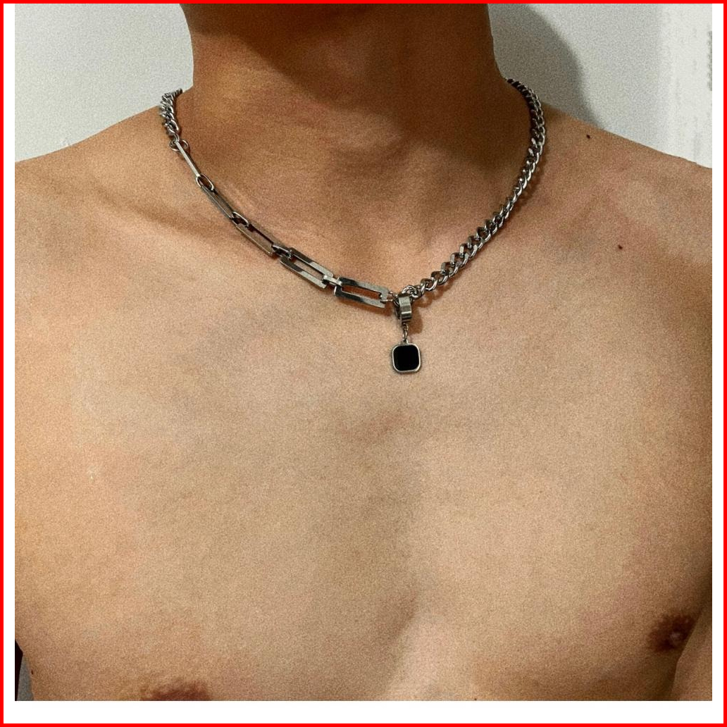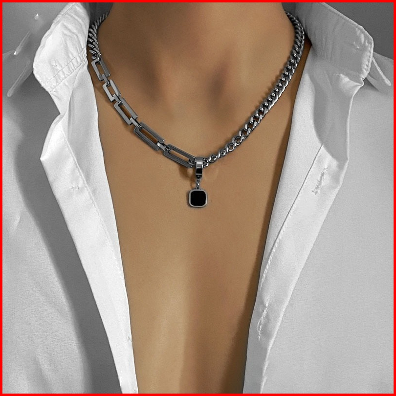 Floyd Kalung Bentuk Kotak Warna Hitam Bahan Titanium Steel Gaya Hip Hop Untuk Wanita Pria