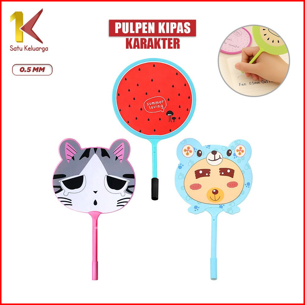 Satu Keluarga Pena Pulpen Gel Kipas A2 Pena Kipas Animal Karakter Lucu Souvenir Alat Tulis Sekolah