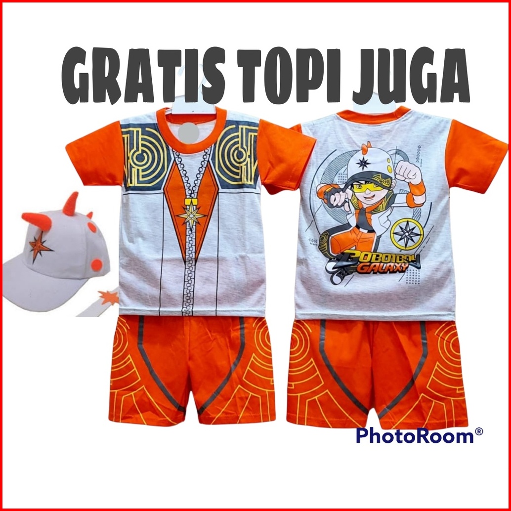 Setelan Baju 1 Set Anak Boboiboy Free Topi Koleksi Daun Air Halilintar Solar Boboiboy Baju Boboiboy