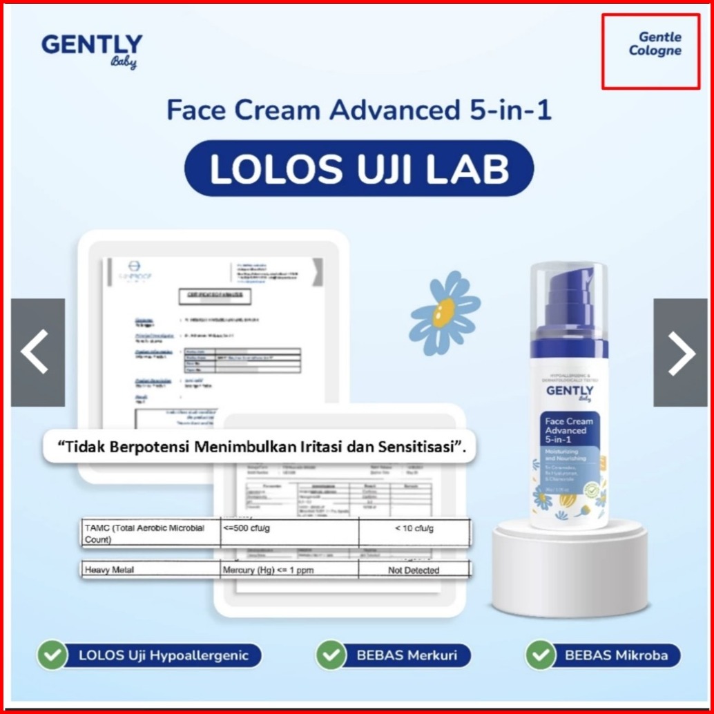Gently Baby Face Cream Advanced 5-in-1 Dengan 5x Ceramide Dan 8x Hyaluronan