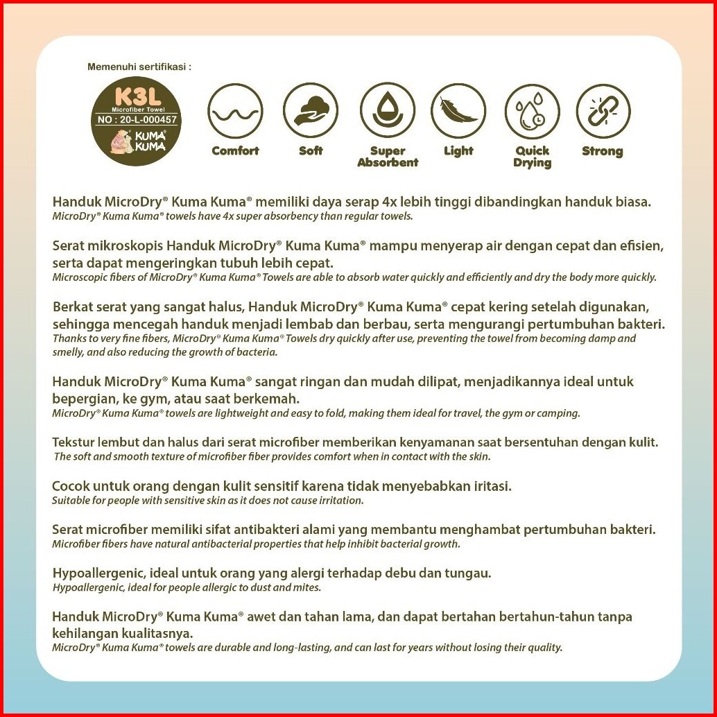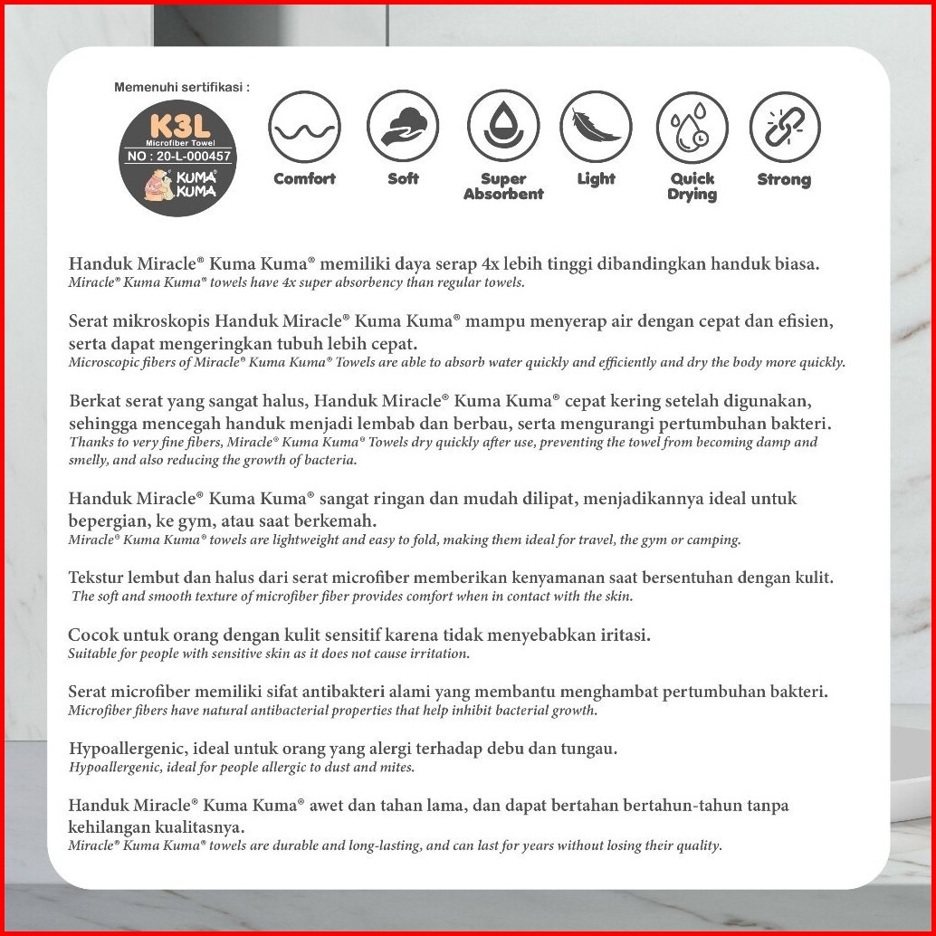 Kuma Kuma Miracle Towel Mircrodry Baby Towel - Handuk Mandi Bayi 140x70 Bahan Microfiber Serap Air