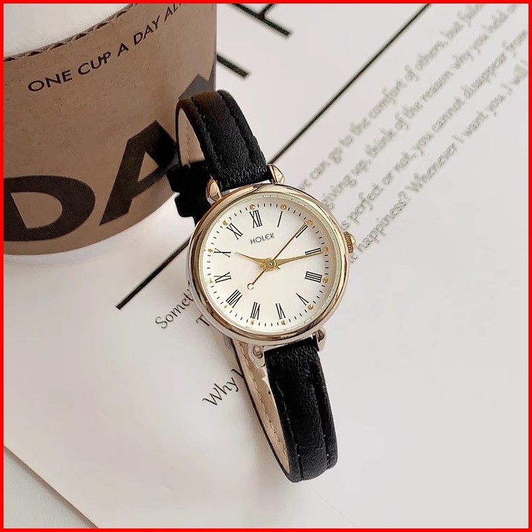 Holek 8716 Jam Tangan Wanita Baru Asli Dial Kecil Bulat Kulit Sabuk Elegan Retro Tahan Air Jam Tangan Wanita