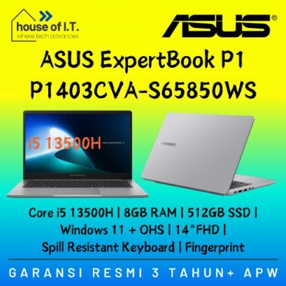 ASUS EXPERTBOOK P1 P1403CVA-S65850WS - i5 13500H 8GB 512GB W11 OHS 14FHD 3Y - Garansi Resmi - Asus P1403CVA i5