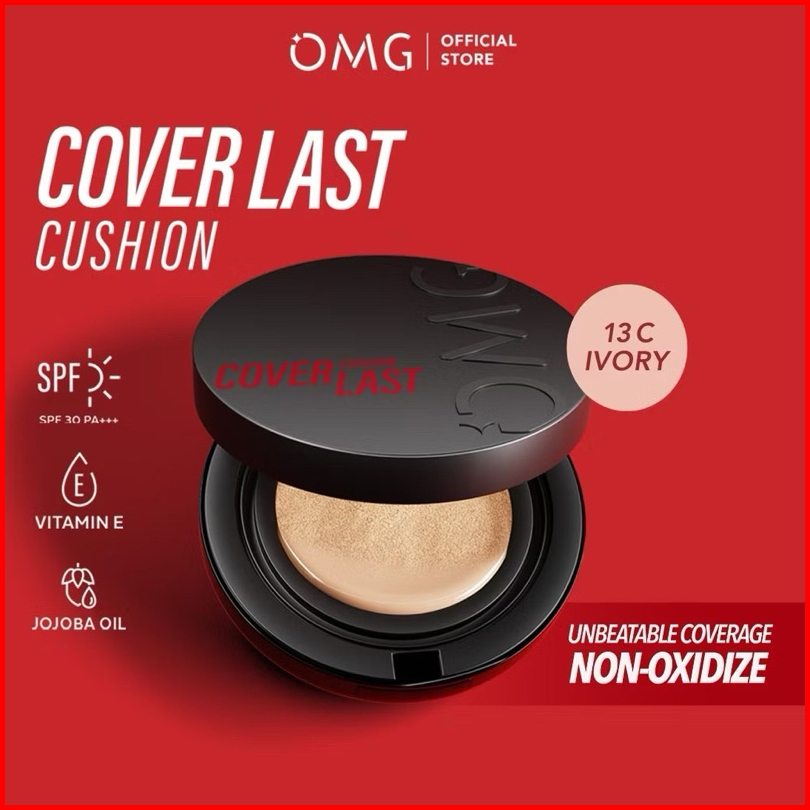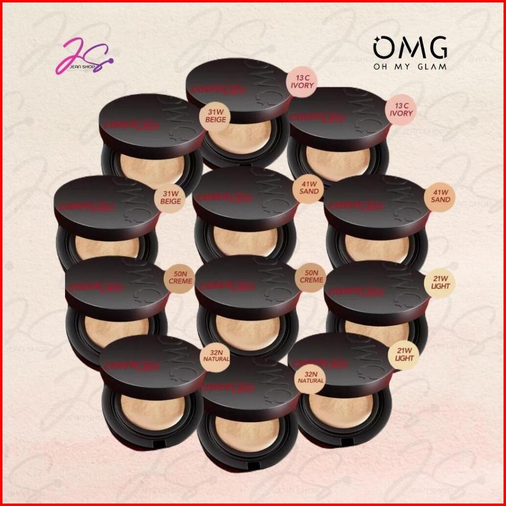 Omg Oh My Glam Coverlast Cushion 15g - Cushion Foundation Concealer Skin Tint Make Up - High Coverage Dewy Finish - Pore