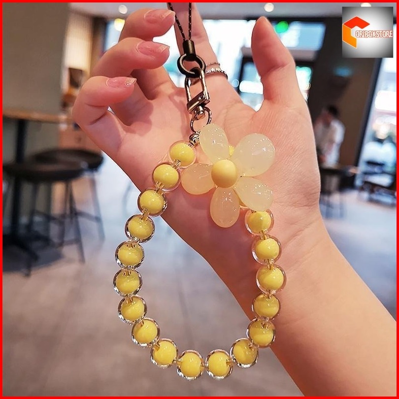 Telepon Lanyard Portabel Ins Handmade Manik-manik Kristal Lanyard Pergelangan Tangan Kabel Warna-warni Manik-manik Bulat
