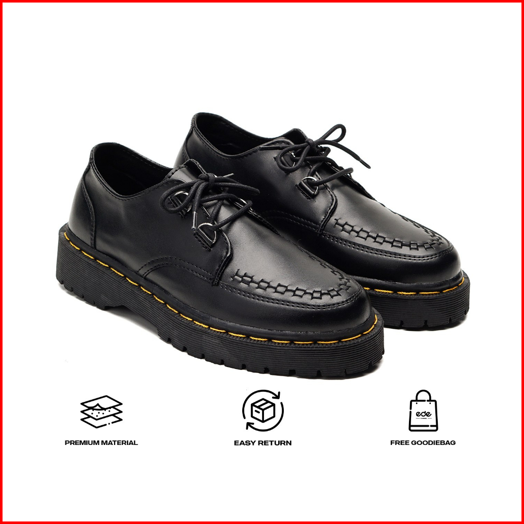 Edefootwear Cursa - Sepatu Boots Derby Casual Kulit Tali Hitam Pria