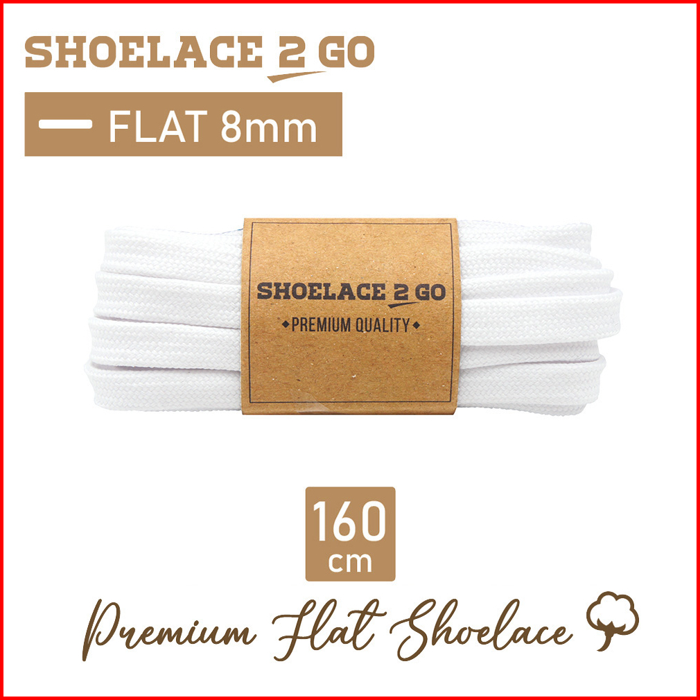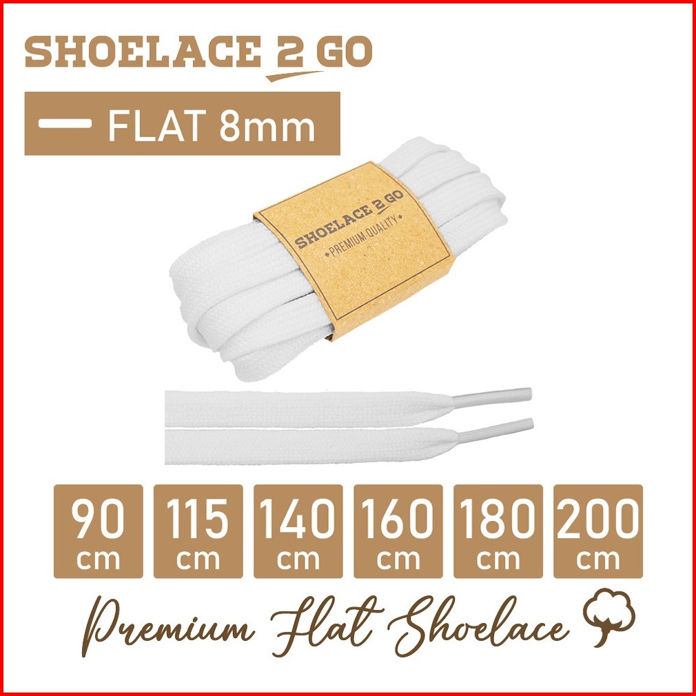 Shoelace2go Tali Sepatu Gepeng Pipih Flat - Sf8 - A1 - White - 8mm - 90cm 115cm 140cm 160cm 180cm 200cm