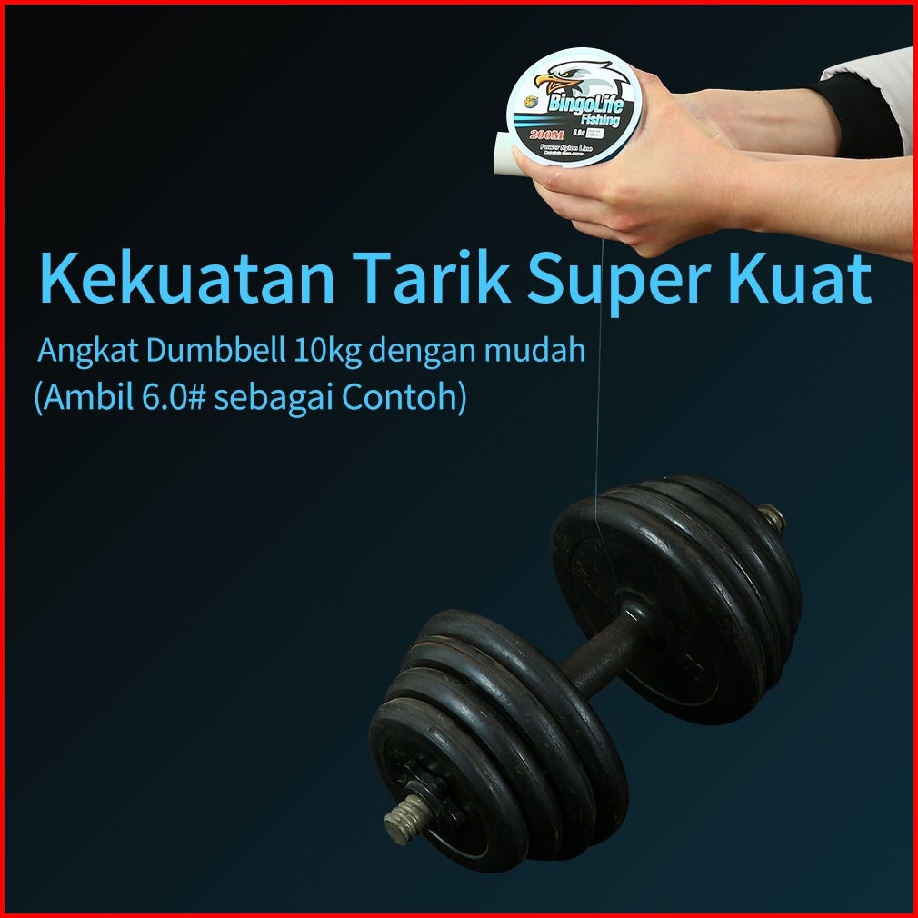 Bingolife Senar Pancing Nilon Jepang 200m Tahan Lama Biru Tenggelam Merah Anti Keriting Hijau Japanese Nylon Fishing Lin