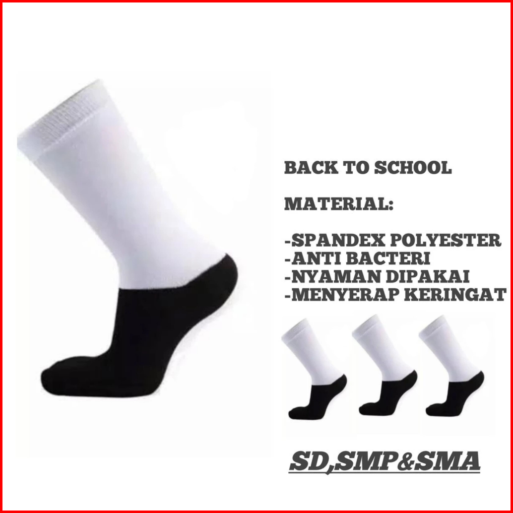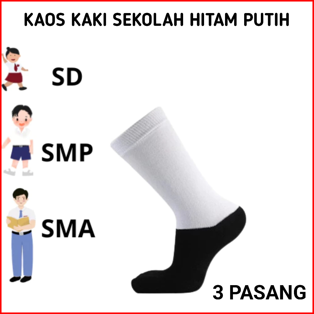 3 Pasang Kaos Kaki Sekolah Hitam Putih Sd Smp Sma