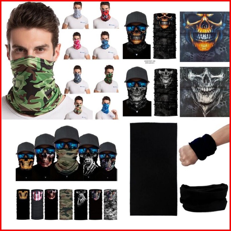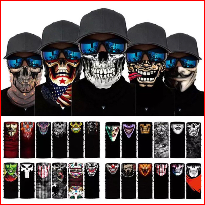 Masker Baff Hitam Dan Motif Tengkorak Dan Motif Berwarna