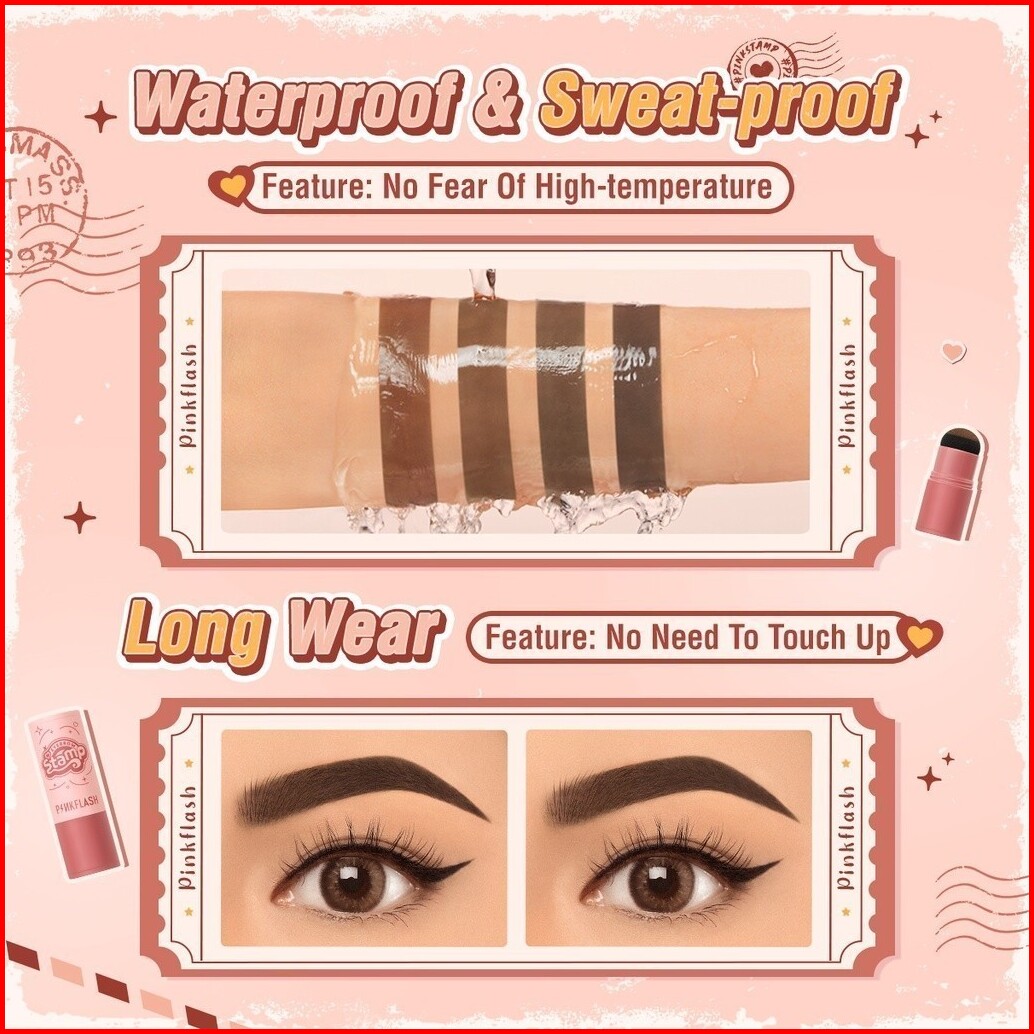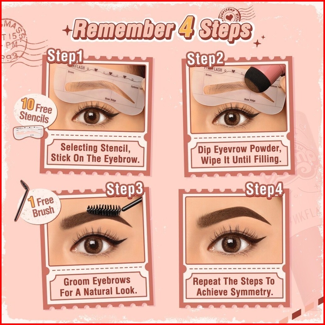 Pinkflash Waterproof Eyebrow Powder Cushion Stamp Natural Matte Multi-use With 10 Reusable Eyebrow Stencil Set Pf-e19 Tn