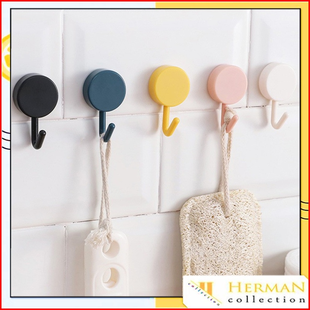 Hc Gantungan Hook Bulat Polos Tempel Tembok Wall Hook Stiker Dinding Kail Tempel Kuat Serbaguna