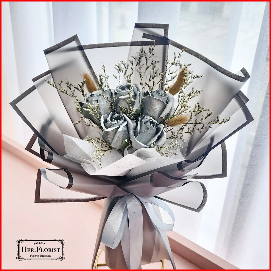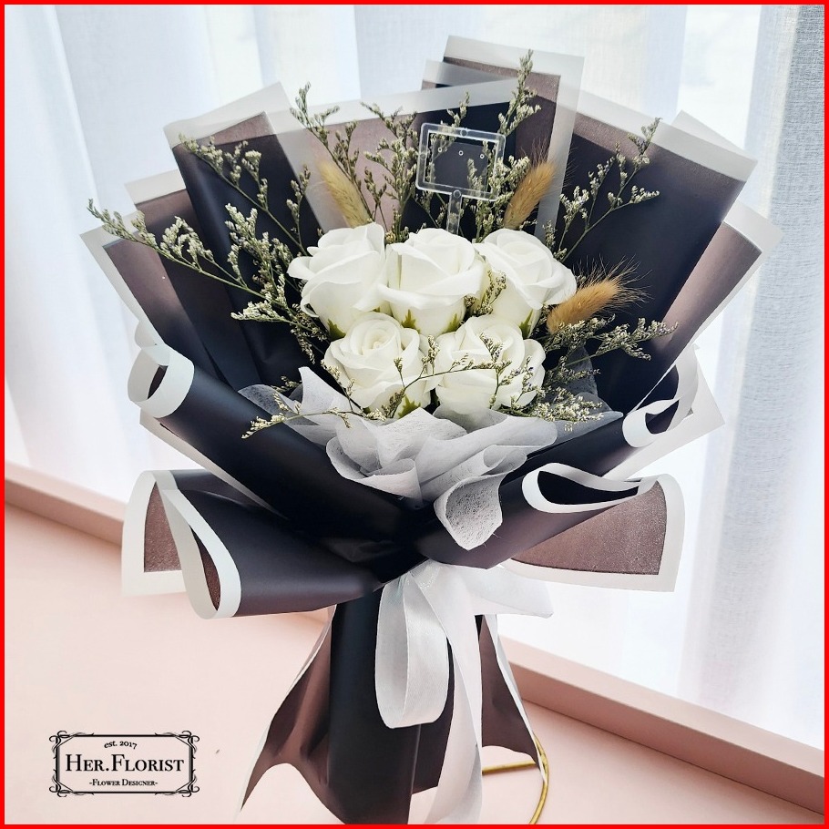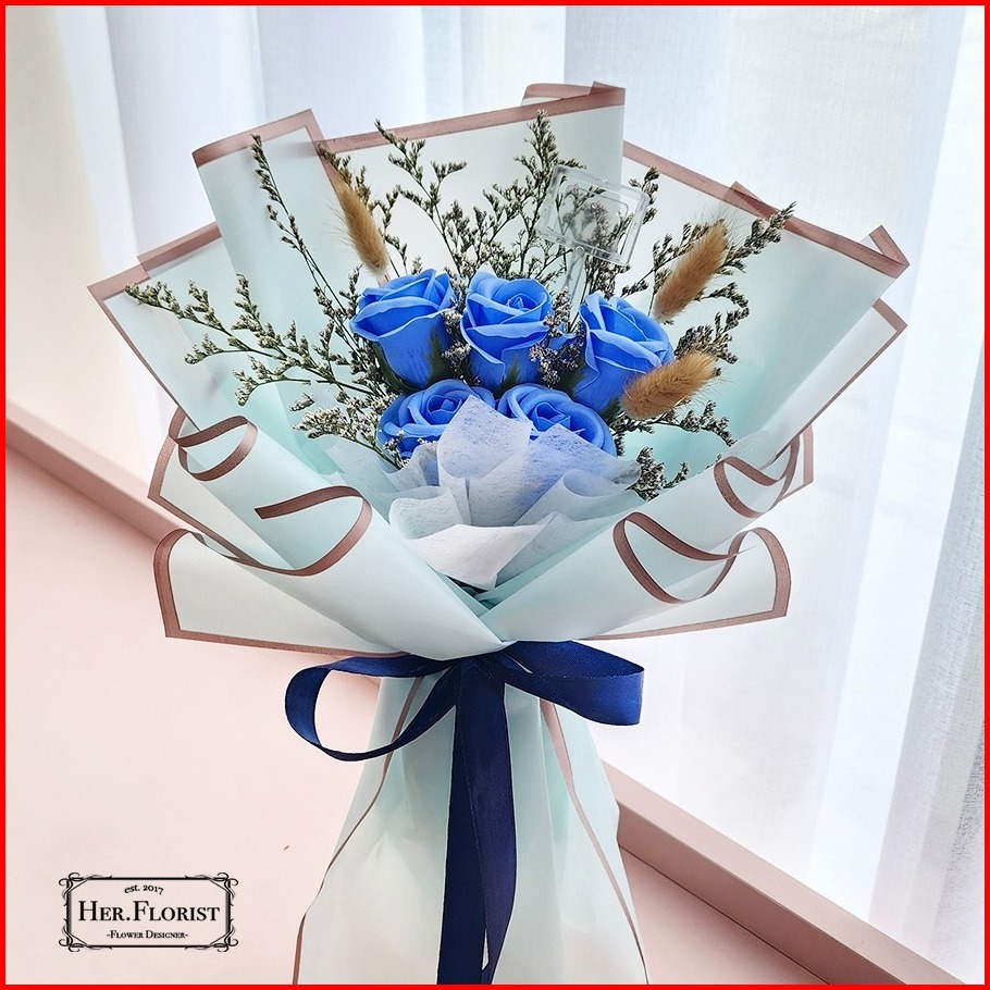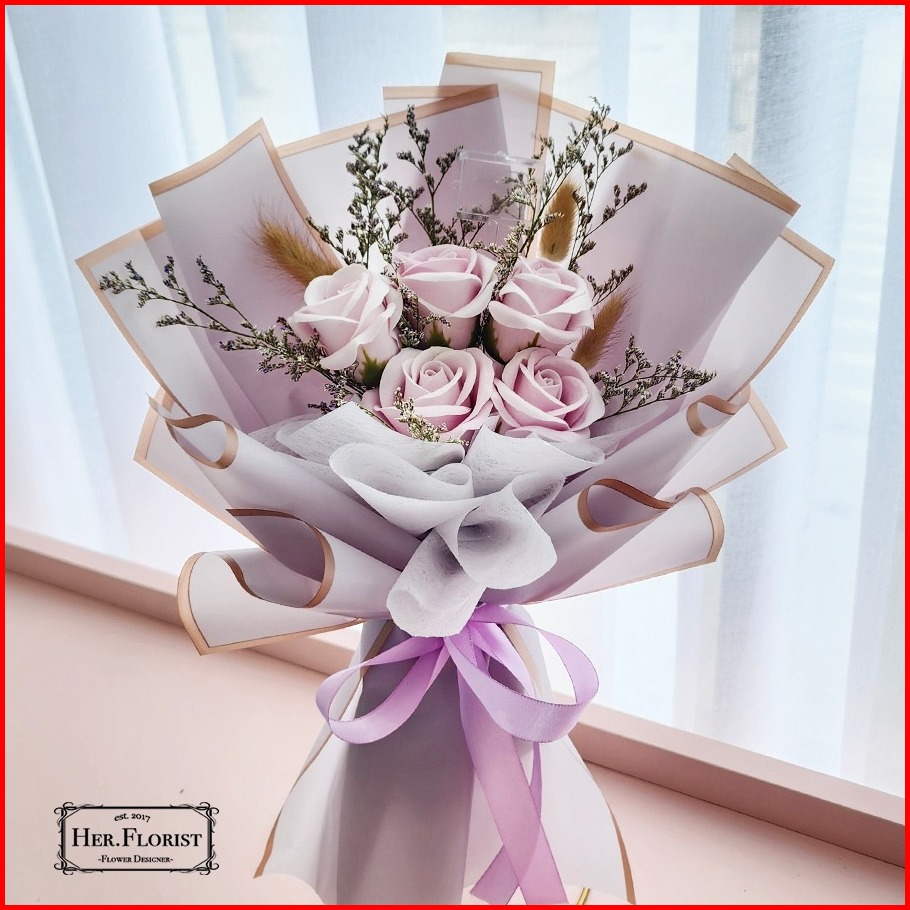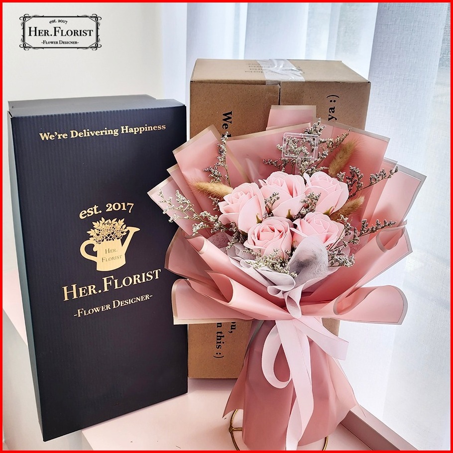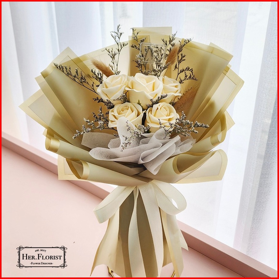 Her.florist Rose 5pcs Soap And Dried Flowers Bouquet Buket Wisuda Anniversary Ulang Tahun Lamaran