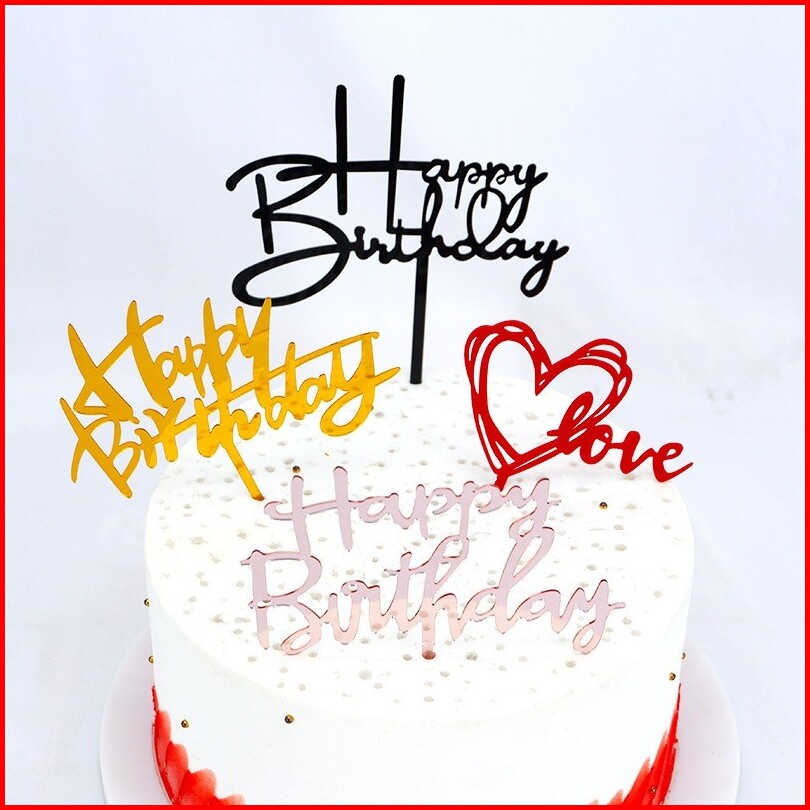Hc Topper Cake Happy Birthday Bahan Akrilik Hiasan Kue Ulang Tahun Acrylic Dekorasi Tusukan Kue Ultah Toppers Cake Hbd