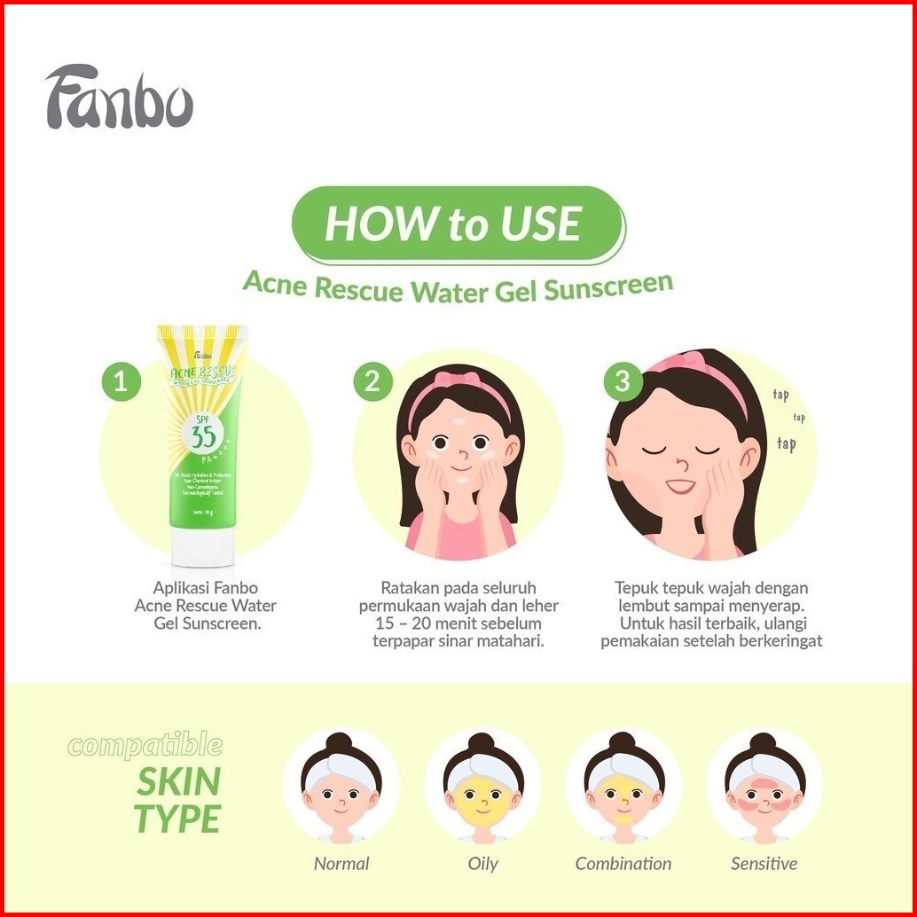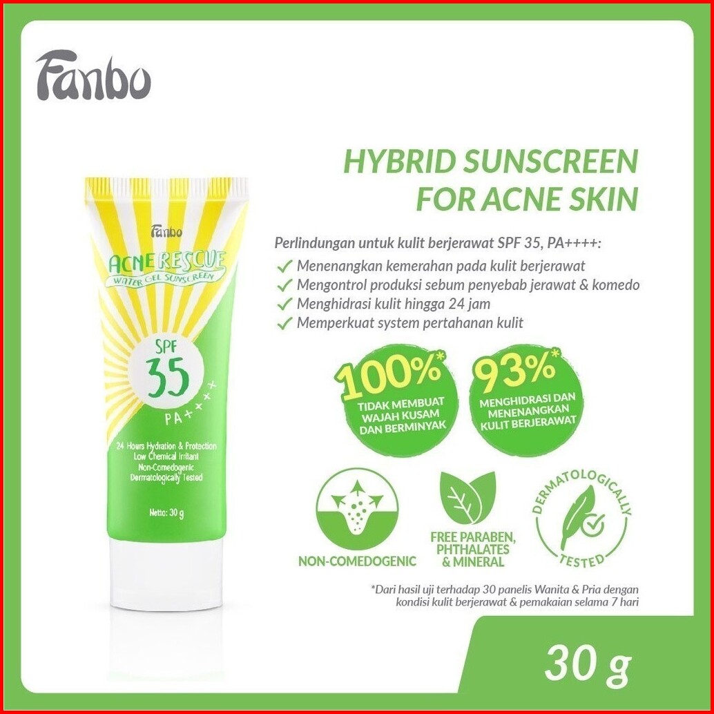 Fanbo Acne Rescue 24 Hours Hydration Water Gel Sunscreen Spf 35 Pa 30gr Tnt Beauty Shop