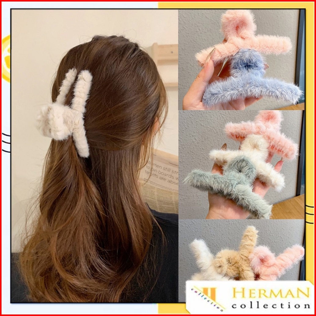 Hc Jepitan Rambut Salon Slim Bulu Halus Jedai Wanita Bahan Bulu Lembut Jepitan Silang Gaya Korea